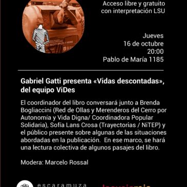 En la librería Escaramuza de Montevideo Gabriel Gatti presenta, el 16 de octubre de 2025, el libro Vidas Descontadas resultado … Leer más